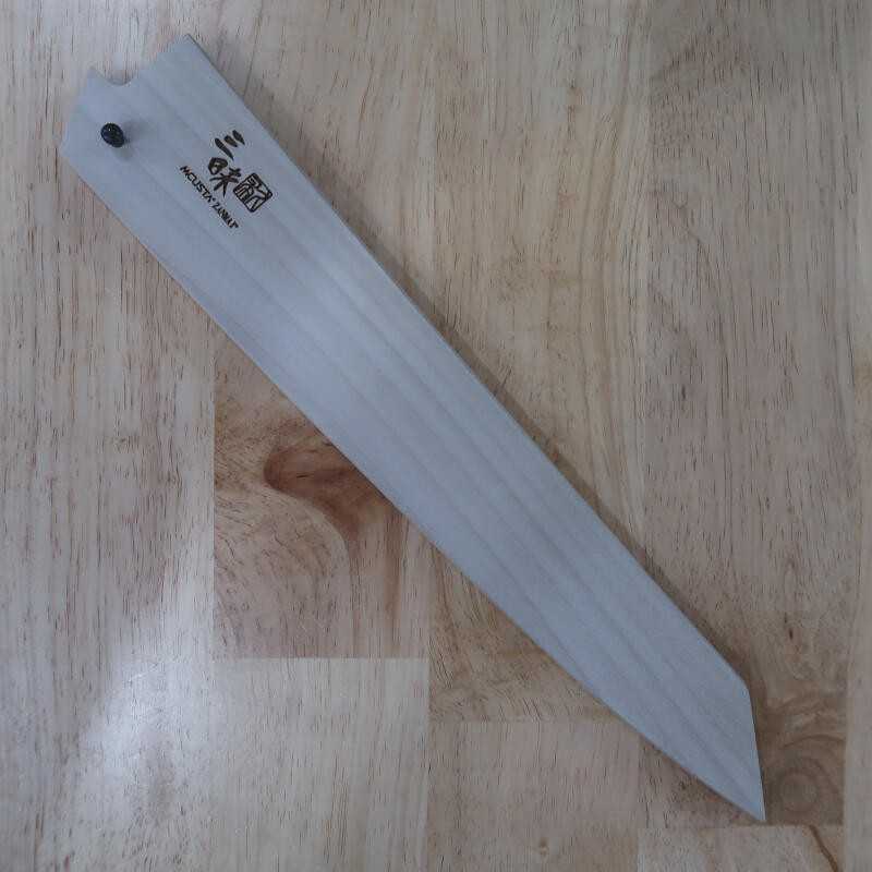 It is tailored to fit the unique silhouette of the Zanmai knife blade, so it fits perfectly.