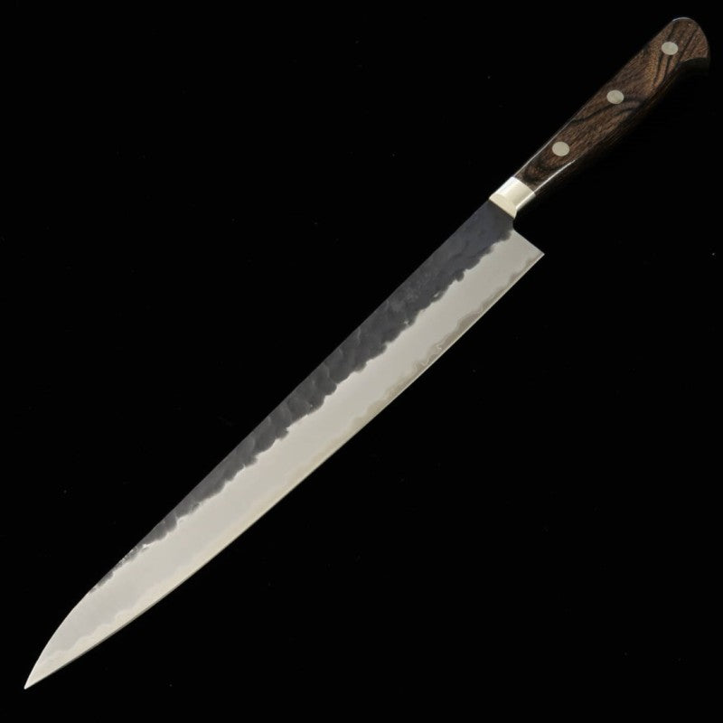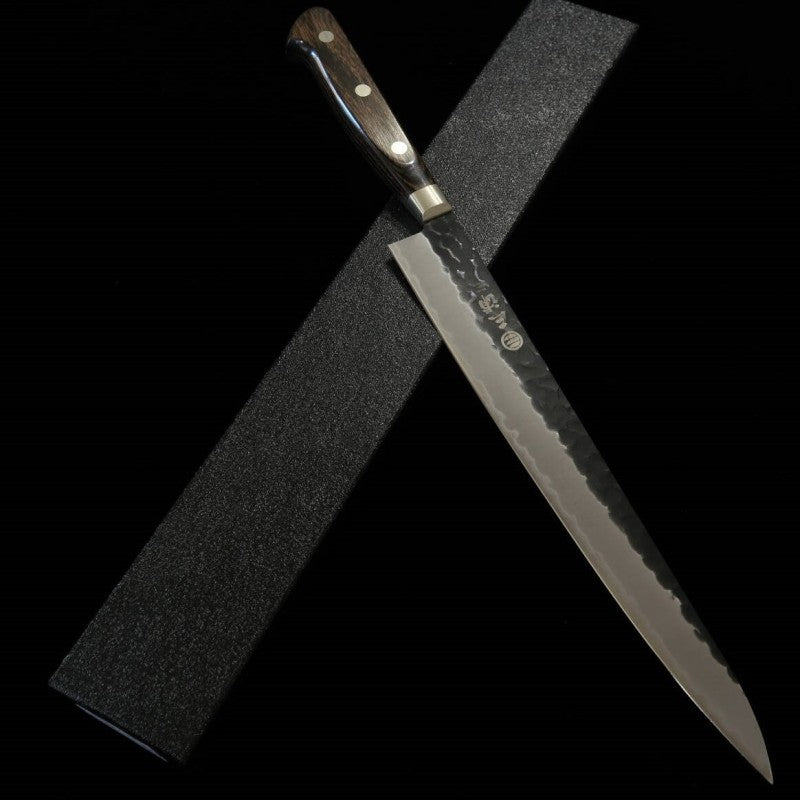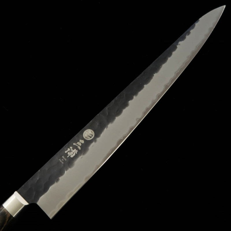 MIURA Sujihiki Aogami Super Hammered Black Finish Dark Brown Handle (240mm)
