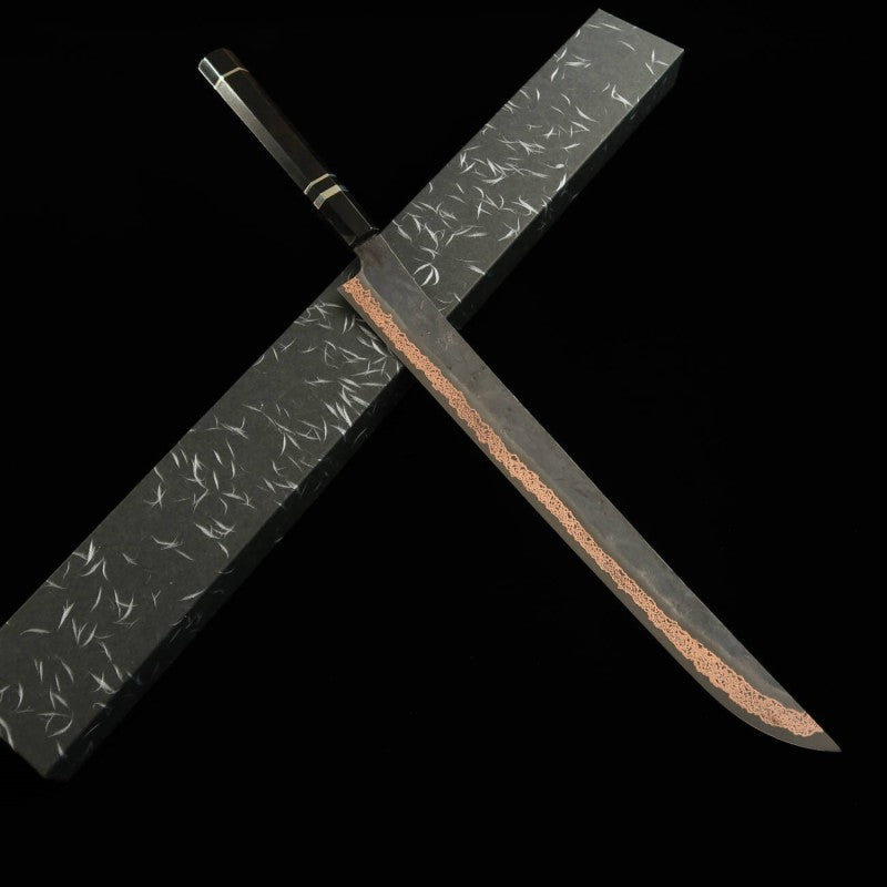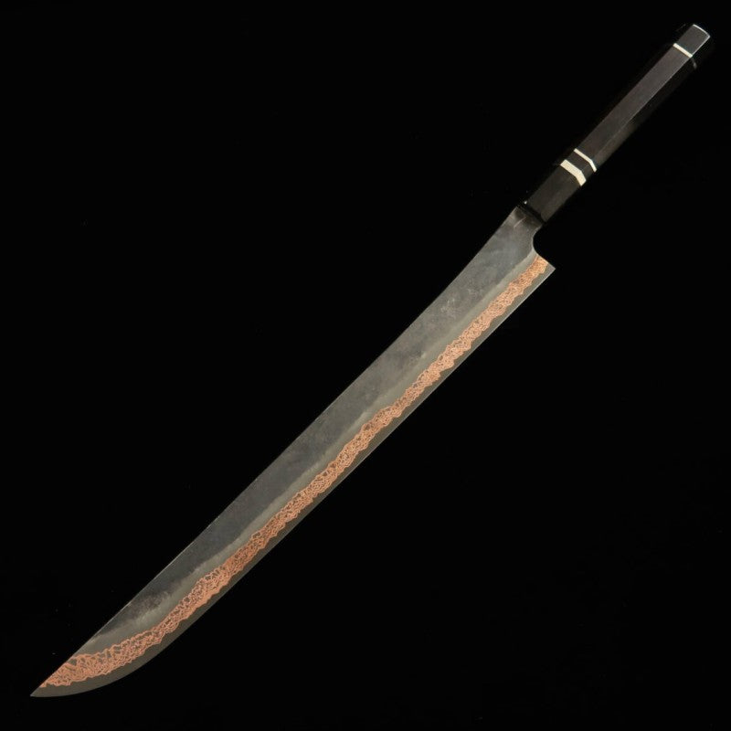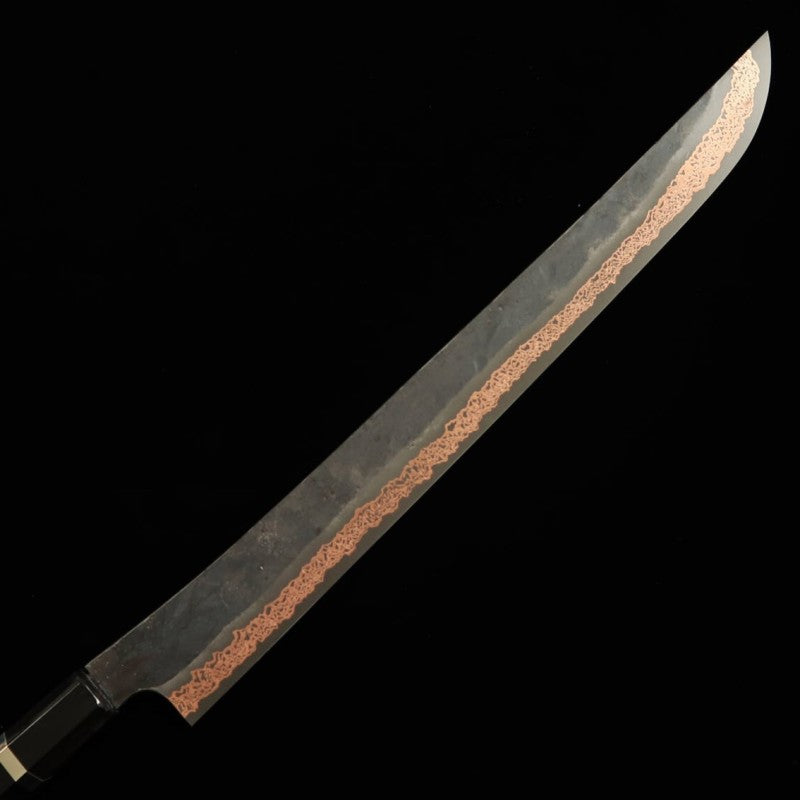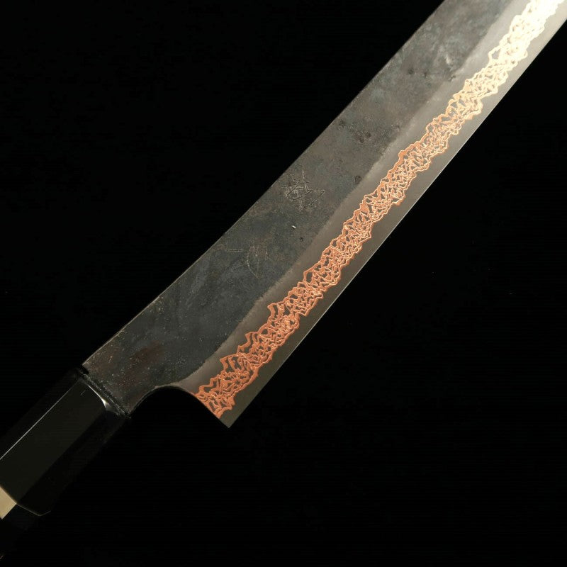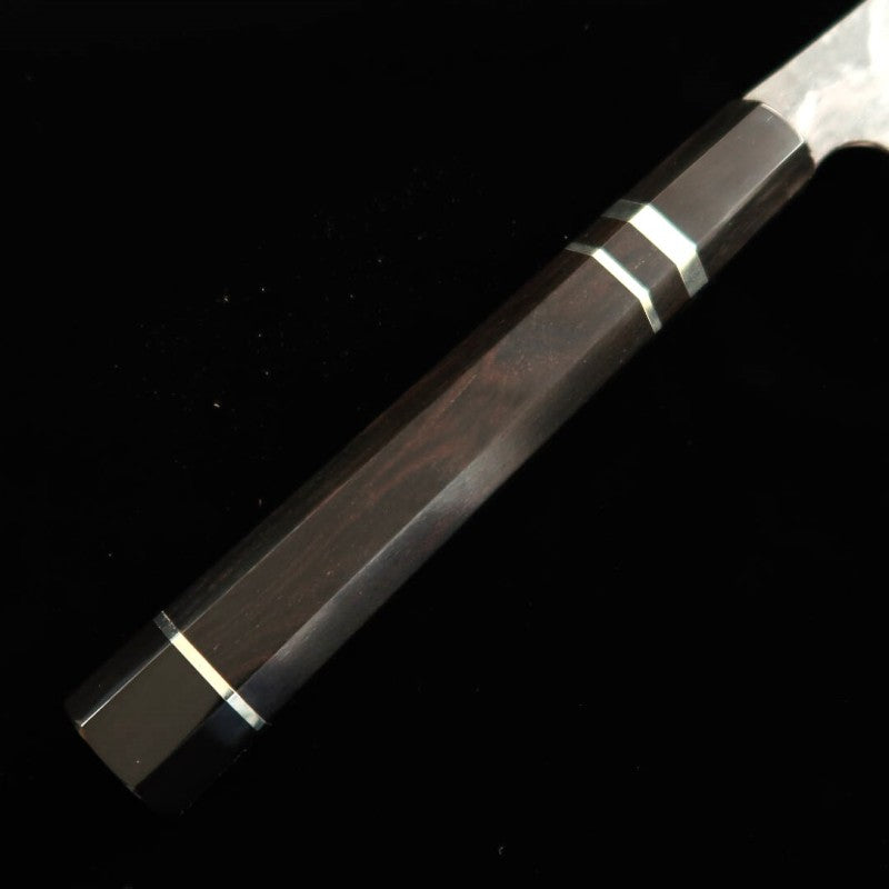 Sakimaru sujihiki HATSUKOKORO "Yorokobi" SLD Black Damascus Ebony Silver Wrap Handle (390mm)