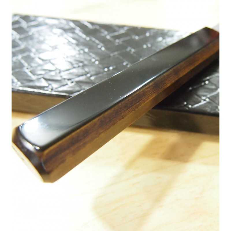 This professional knife features a glossy black lacquered handle and a high-quality blade that complement each other.
