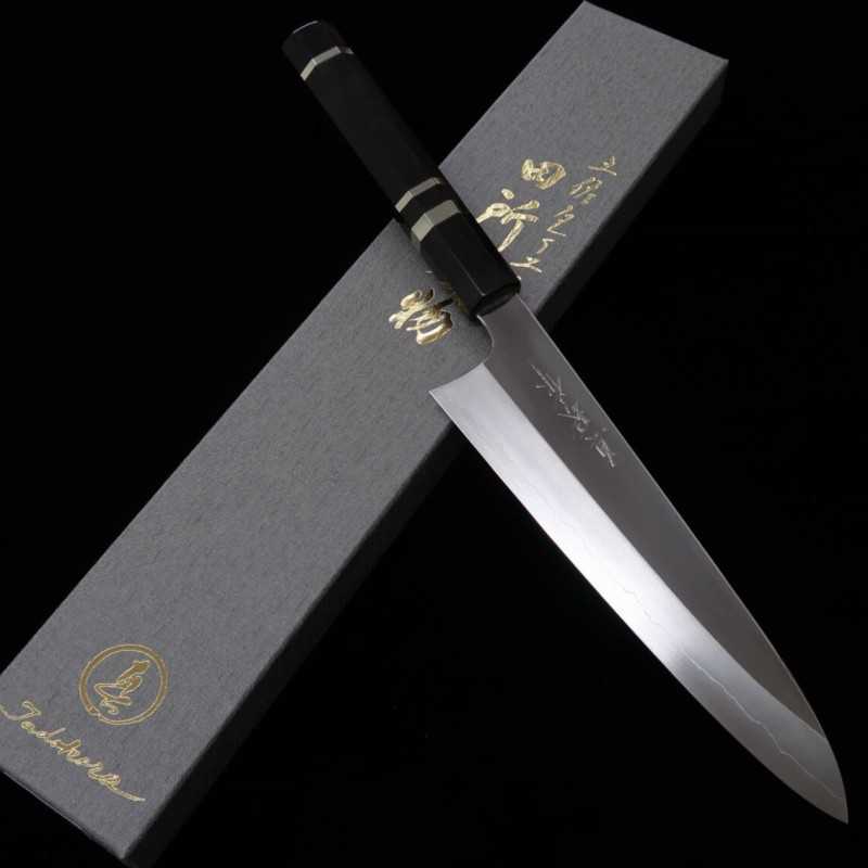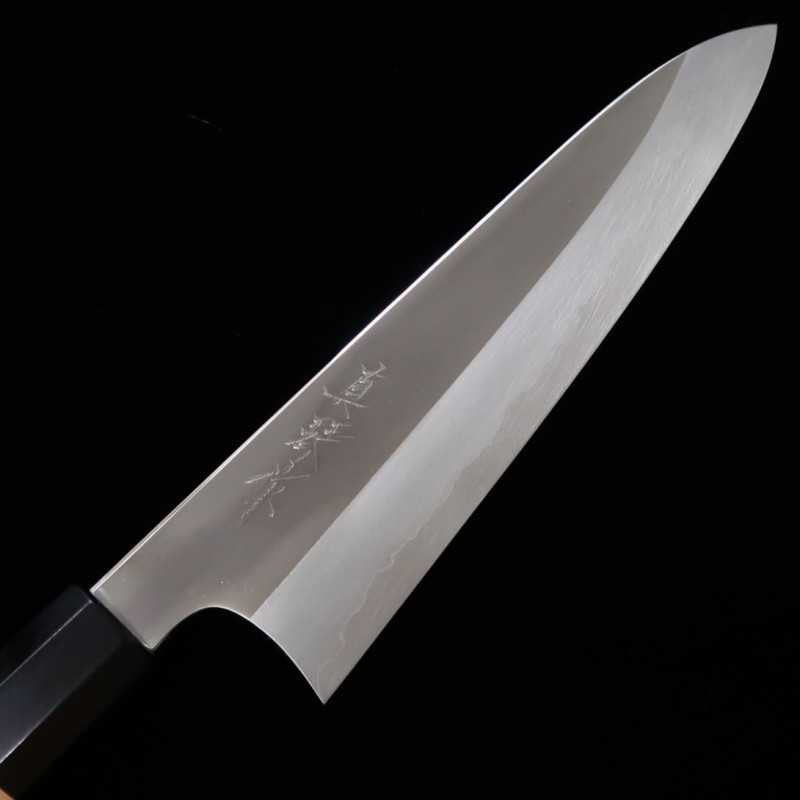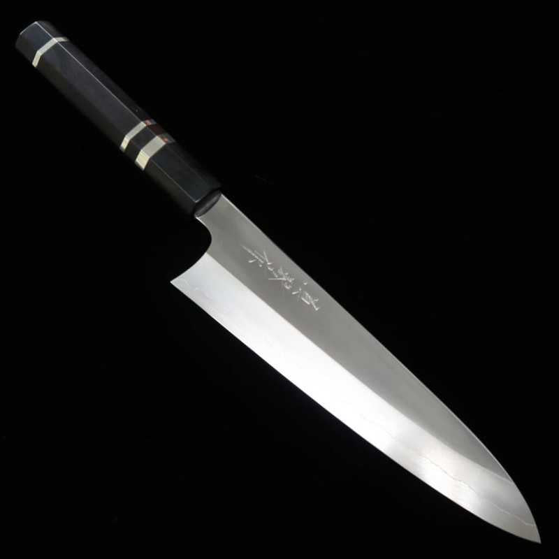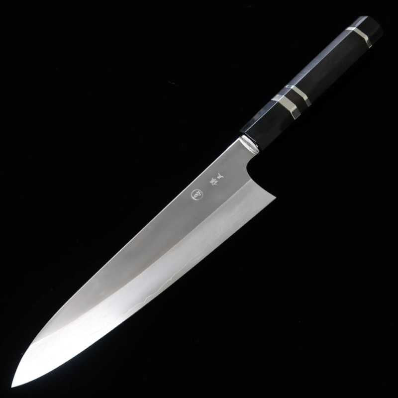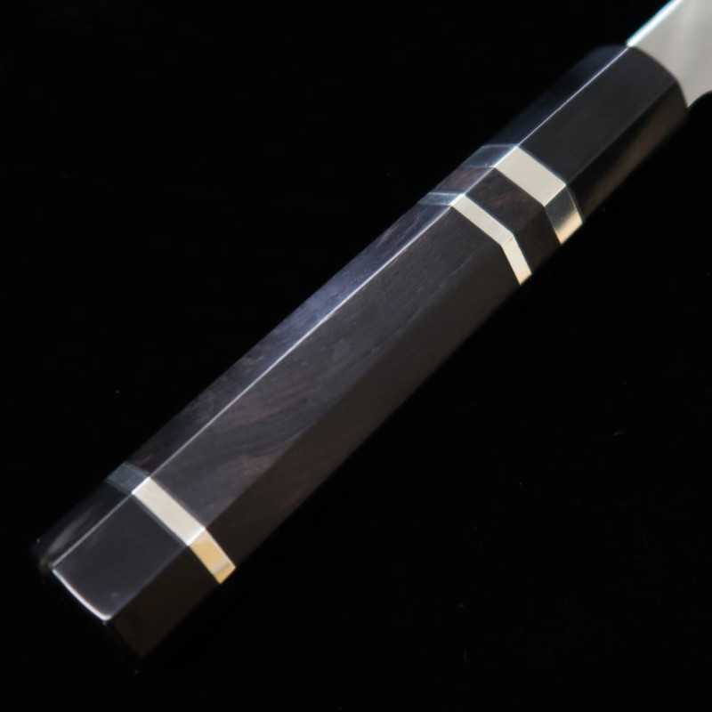Gyuto TADOKORO HAMONO Makoto Mirror Finish Ginsan Steel Ebony Silver Wrapped Octagonal Handle (210mm)