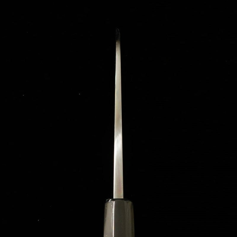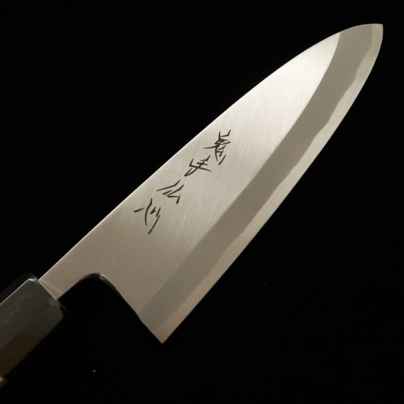 A Deba bearing the name "Kishubussin" (鬼手仏心), made of Hitachi Metal's Shirogami No. 2 steel forged by the traditional craftsman based in Sakai, Osaka Kenji Togashi.