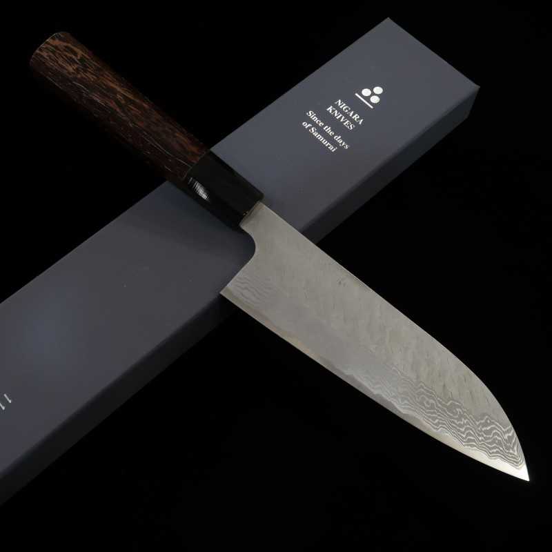 Santoku NIGARA VG10 Damasco martillado, mango de wengué (180 mm)