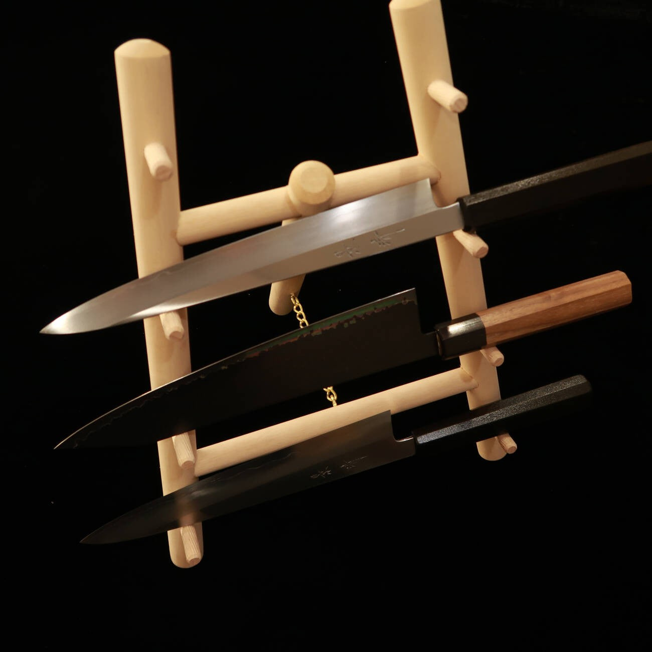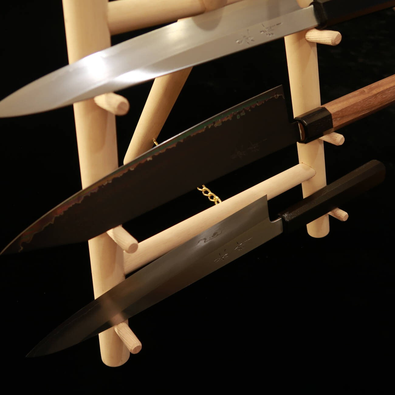 Estante para cuchillos de 4 piezas, de madera de magnolia, para montar.