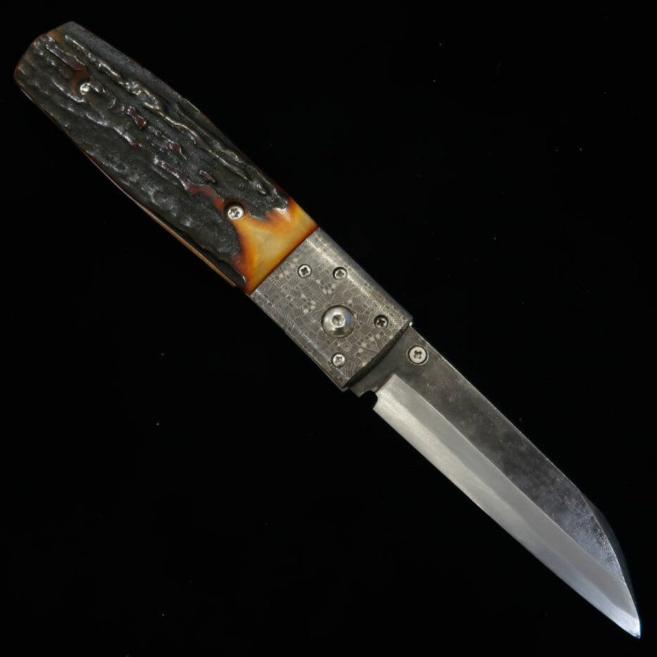 Takeda Hamono TAKEDA, herrero artesanal de Bitchū, obra de Inagaki, navaja liner lock tipo B, asta de ciervo de la India teñida, bolster especial, acero Hitachi Aogami Super.
