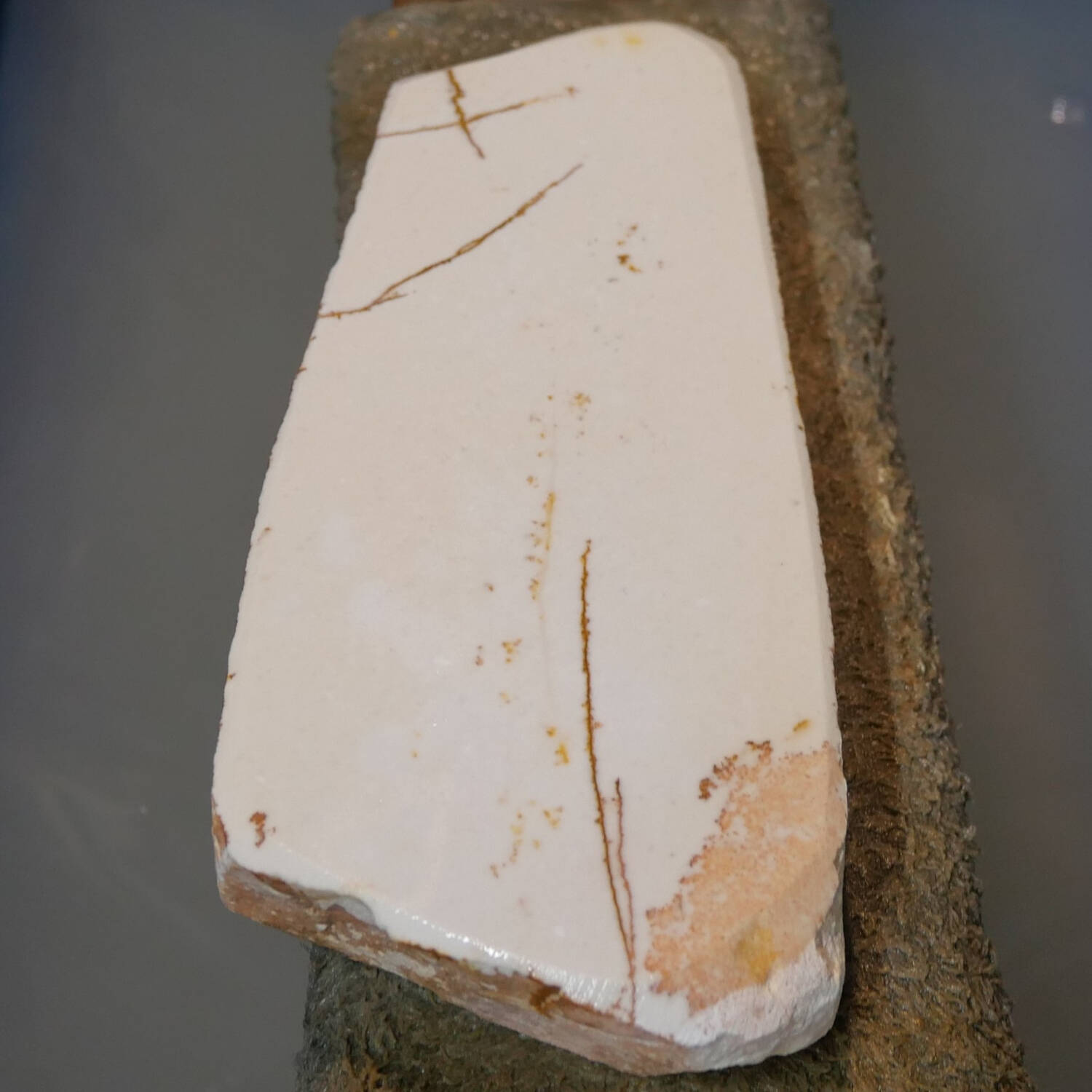 En la duodécima imagen se muestra el resultado tras eliminar el barro y afilar la piedra.