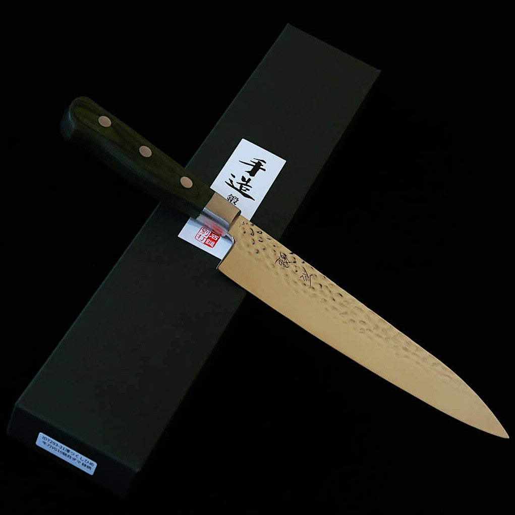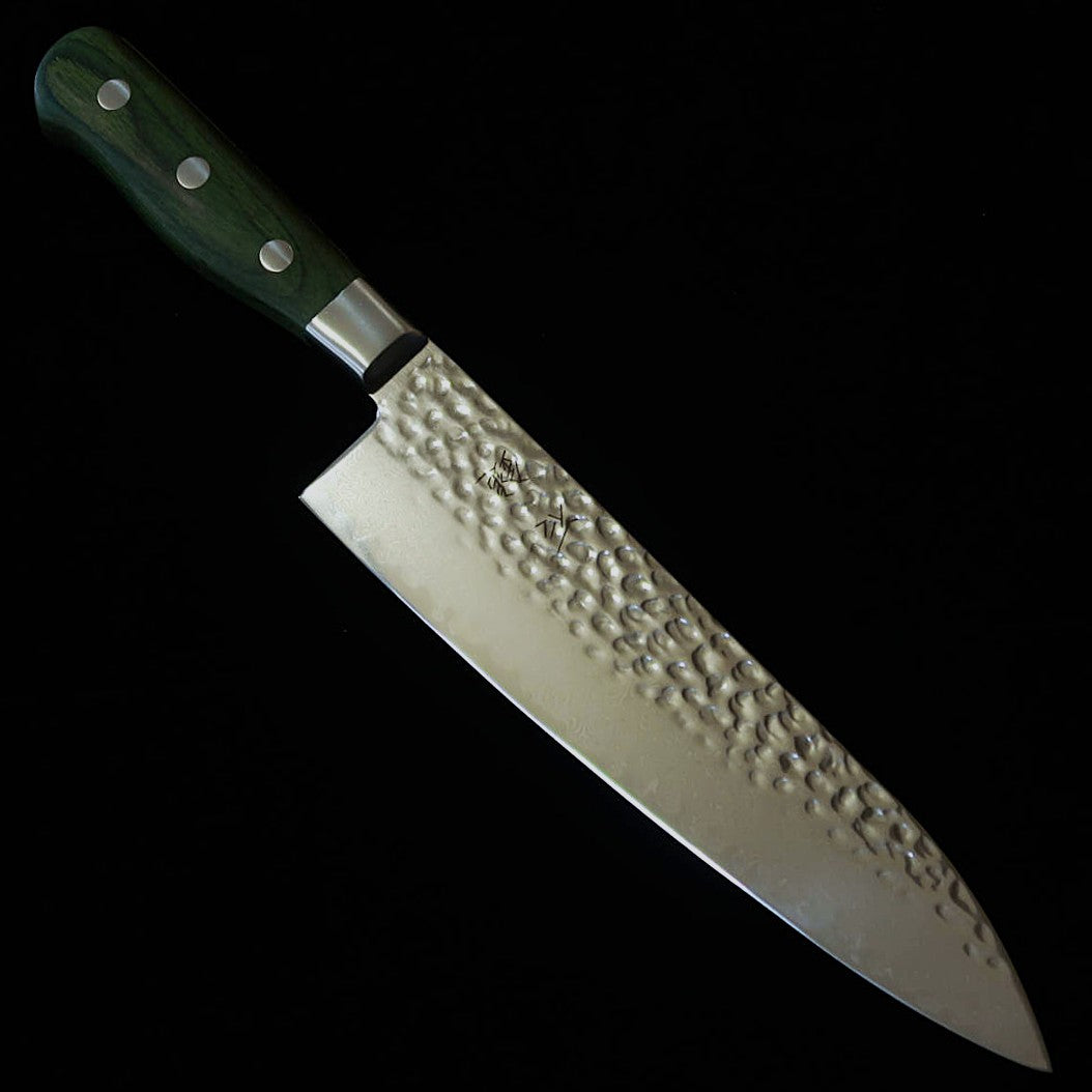 石鎚ISHIDUCHI 牛刀 VG10 鎚目 67層ダマスカス 緑ハンドル(210mm)