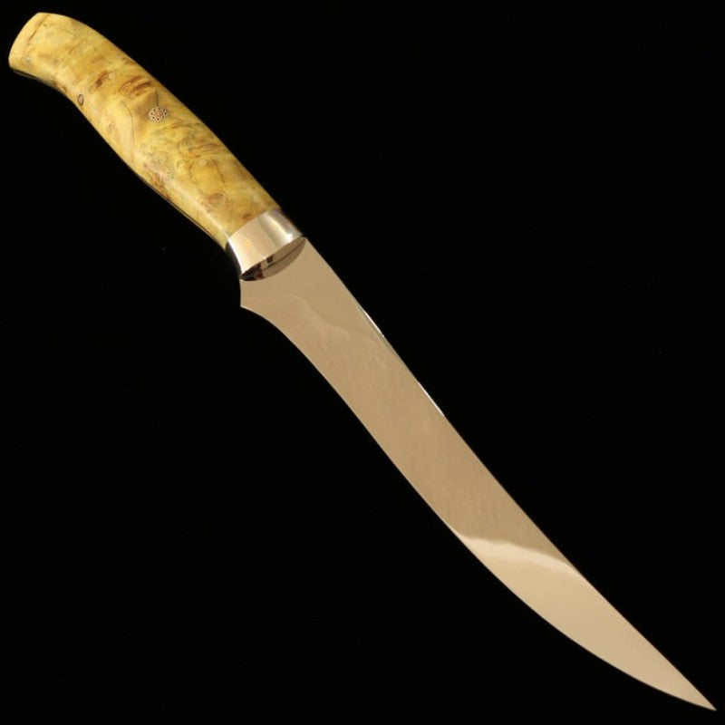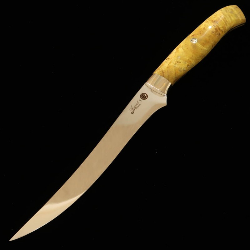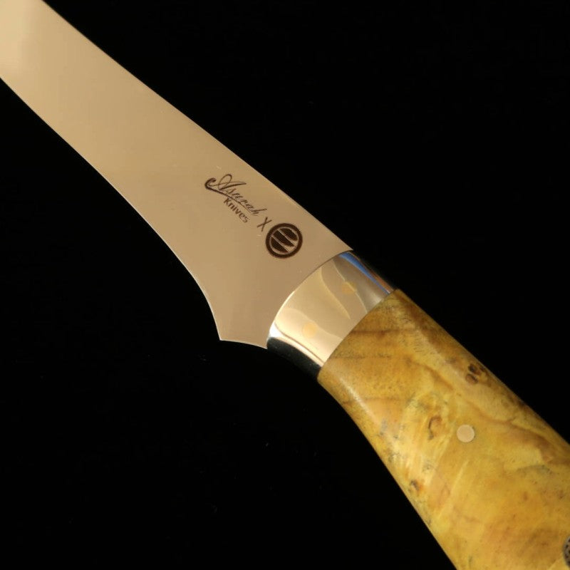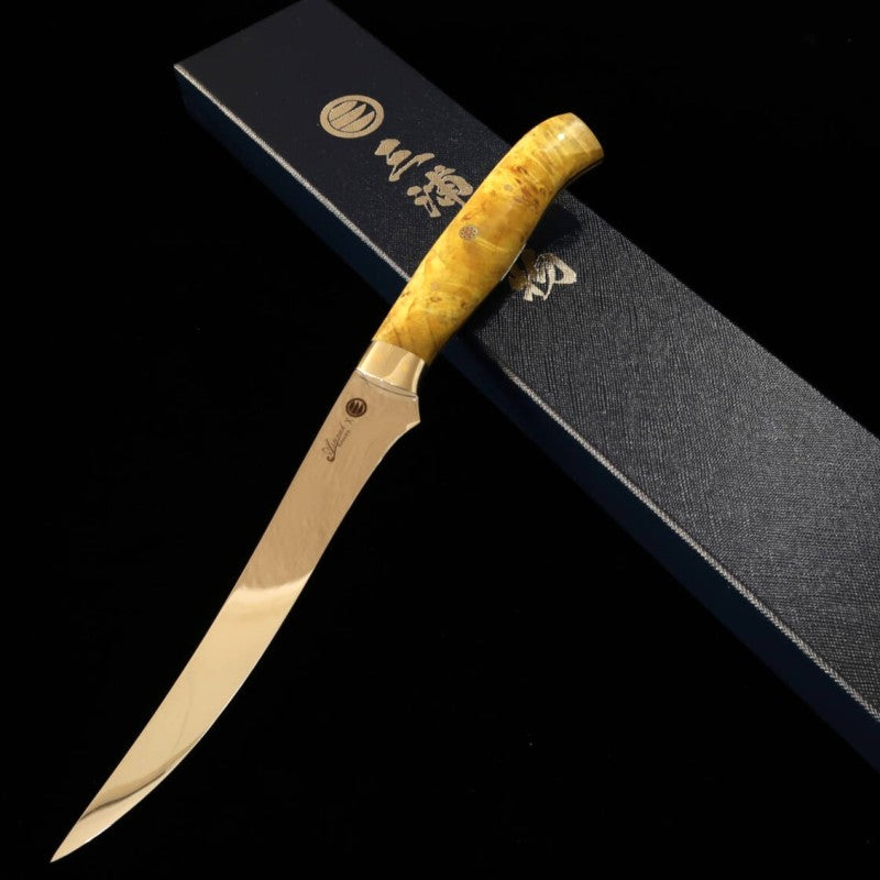 Cuchillo para filetear Asurah Knives × Miura SUS420J2 acabado espejo mango personalizado amarillo (160 mm)