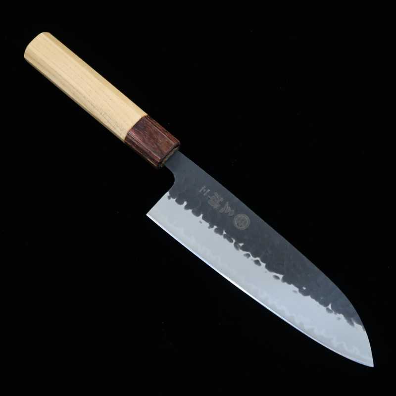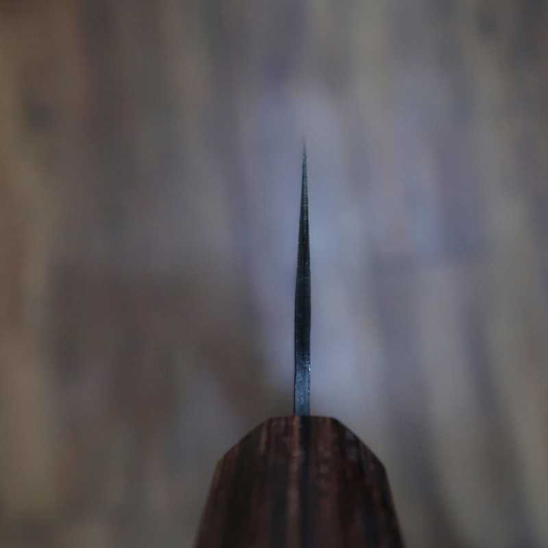 Ce couteau utilise le Super Acier Bleu, reconnu pour son tranchant durable, enveloppé par de l'acier inoxydable.