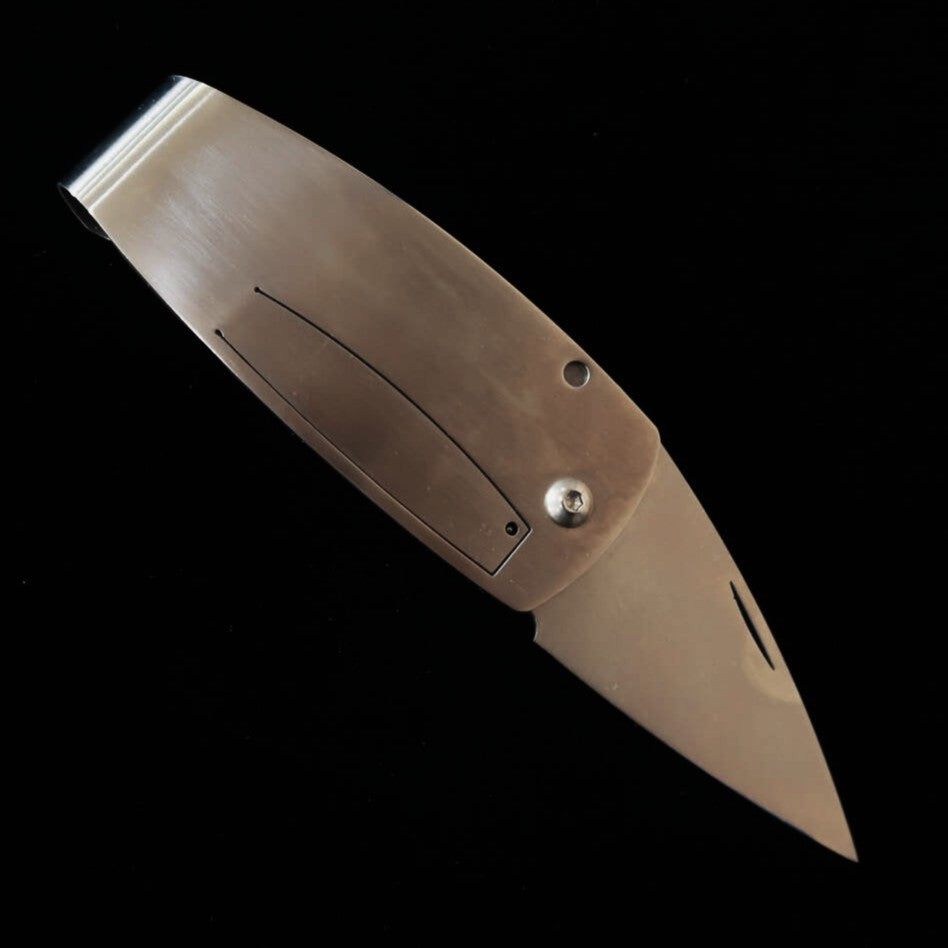 マネークリップとナイフが一体となった本シリーズは、小型でシンプルな構造を持ち、アクセントに家紋が入ります。