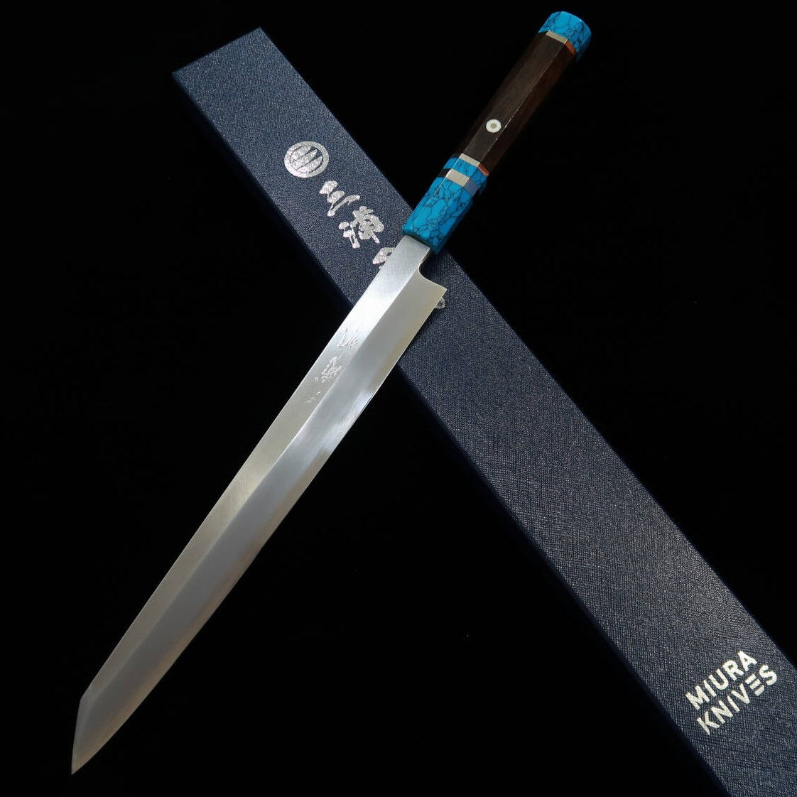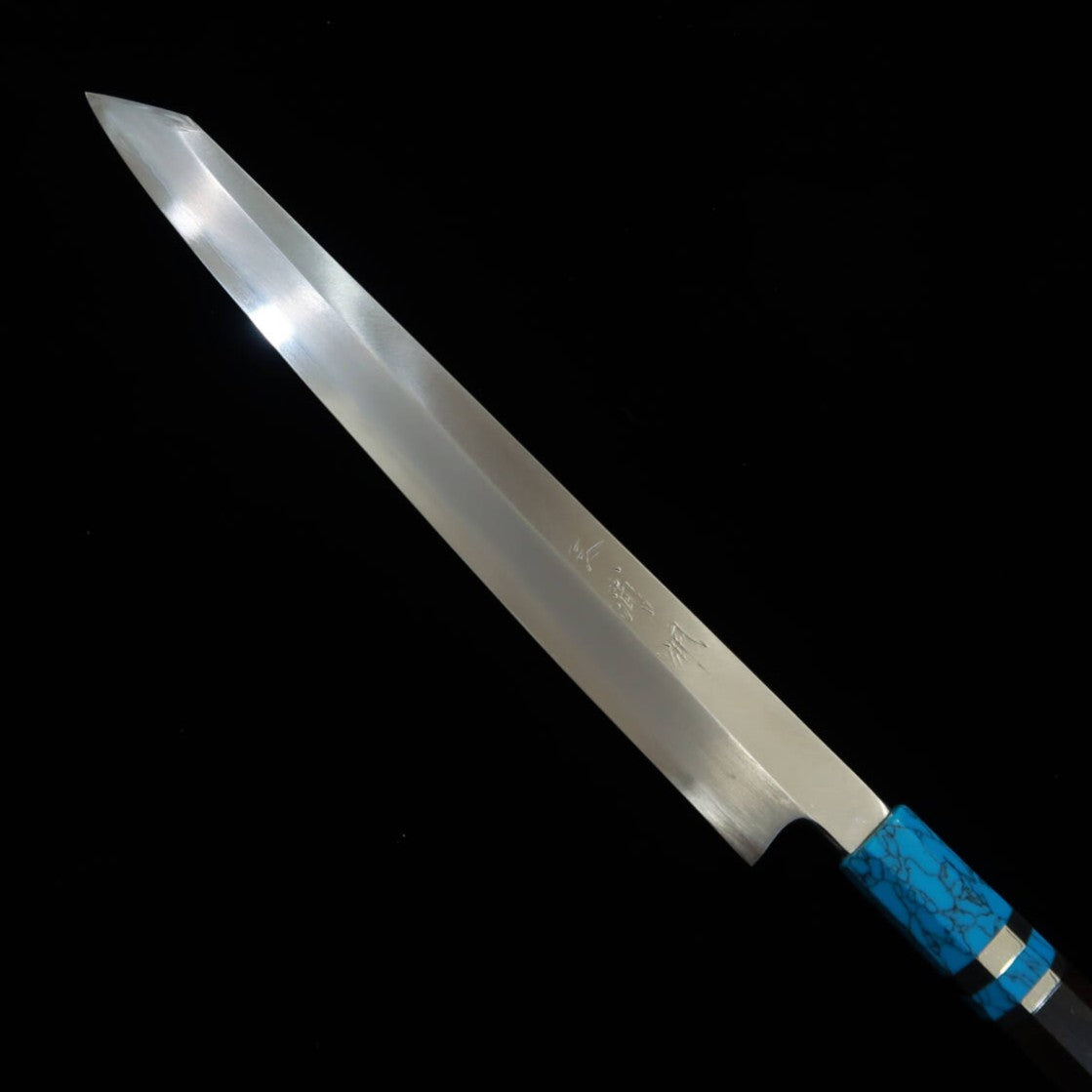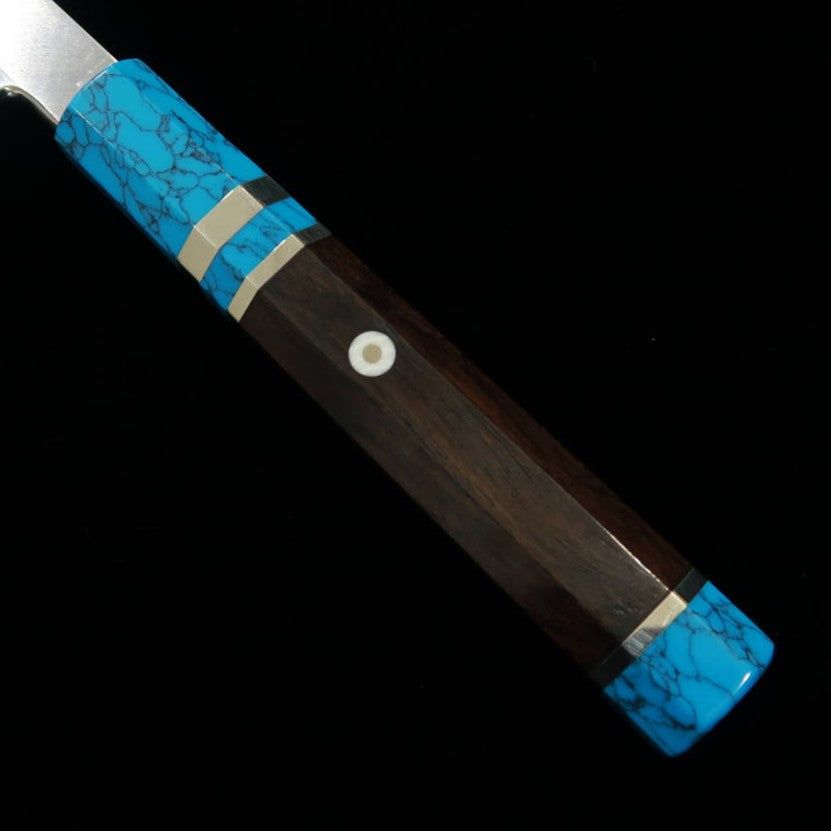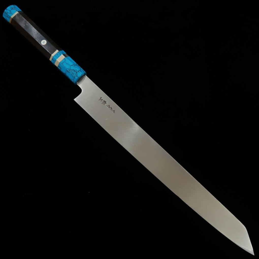 三浦佩MIURA Obidama 切付柳刃 左利き用 銀紙三号 木砥仕上げ ターコイズハンドル (300mm)