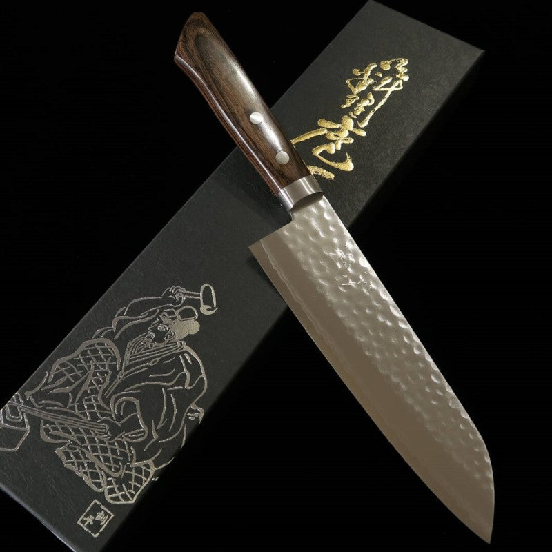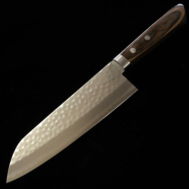 三浦 MIURA 三徳 刻流 VG10 鎚目 ダマスカス ブラウンアッシュ柄 (170mm)