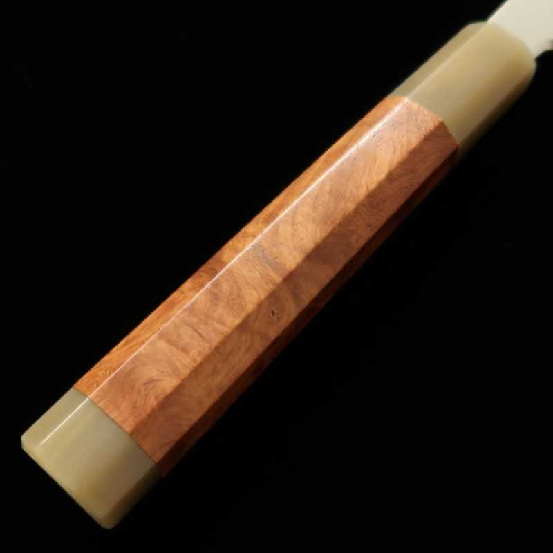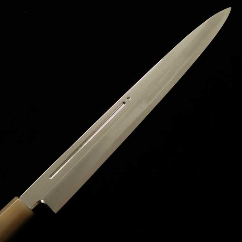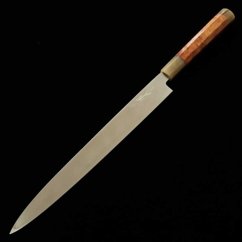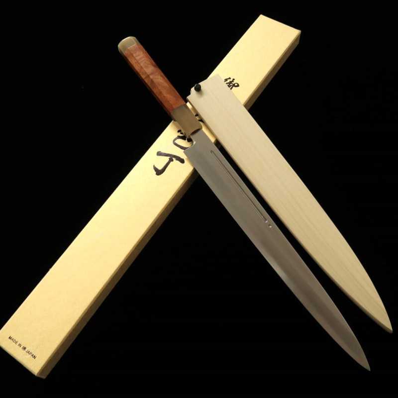 三浦 MIURA 銀紙三号 血流し付き ブビンガ柄 朴鞘 柳刃 (300mm)