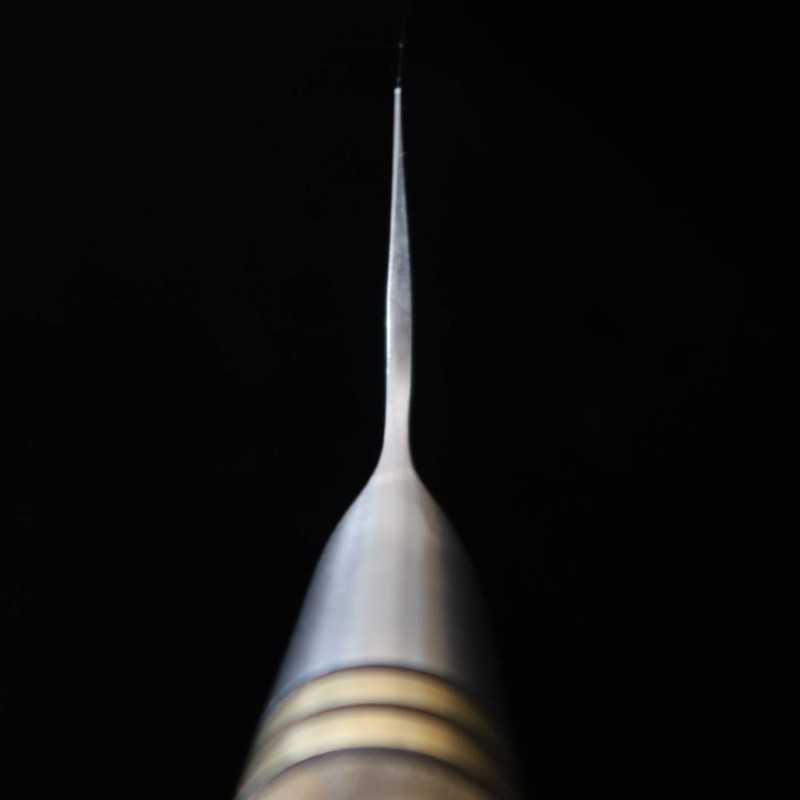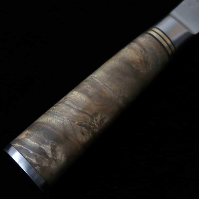 有色ダマスカスを使ったナイフはその見た目の美しさと相まって氏の作品として非常に有名かつ人気である