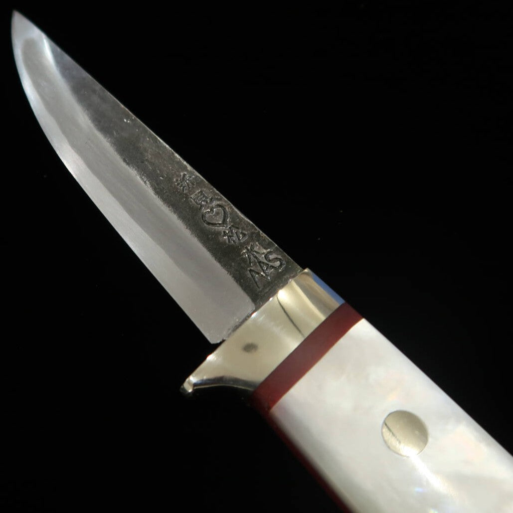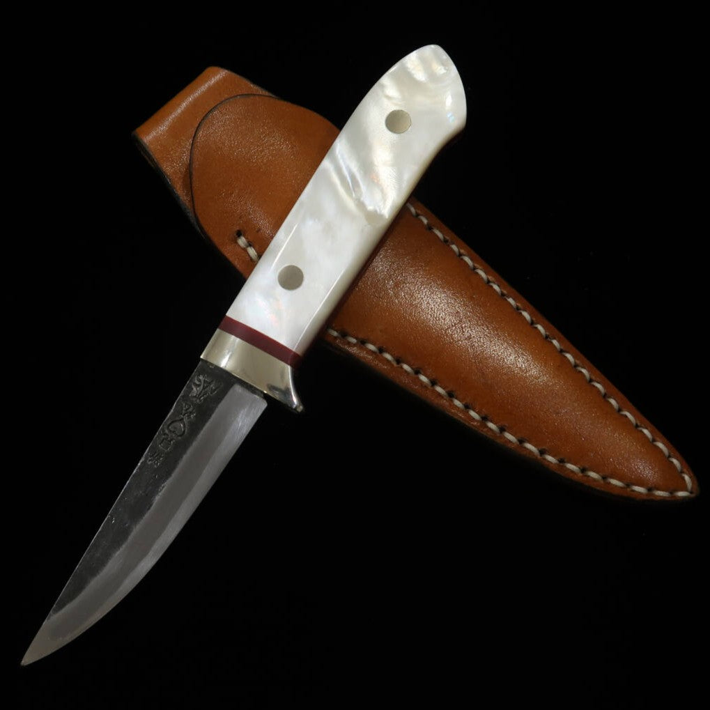 武田刃物TAKEDA 備中手打ち鍛冶 守屋作 シースナイフ パールハンドル(80mm)