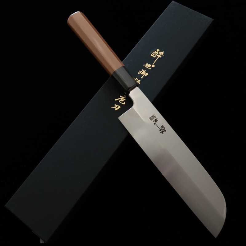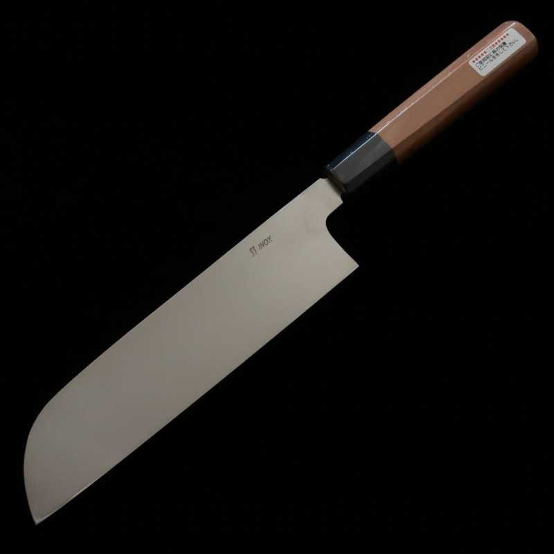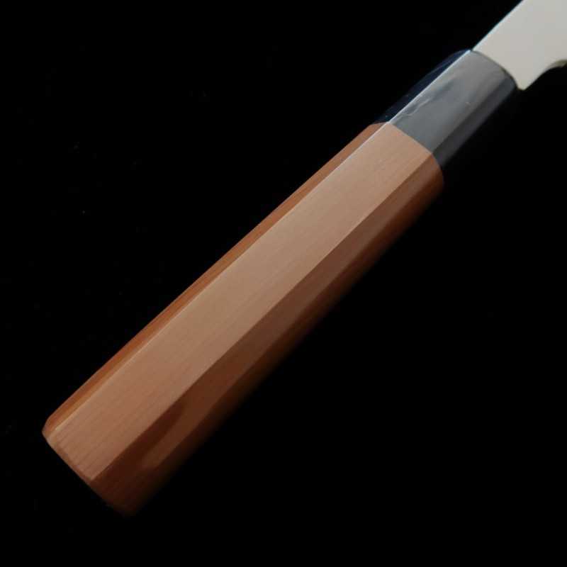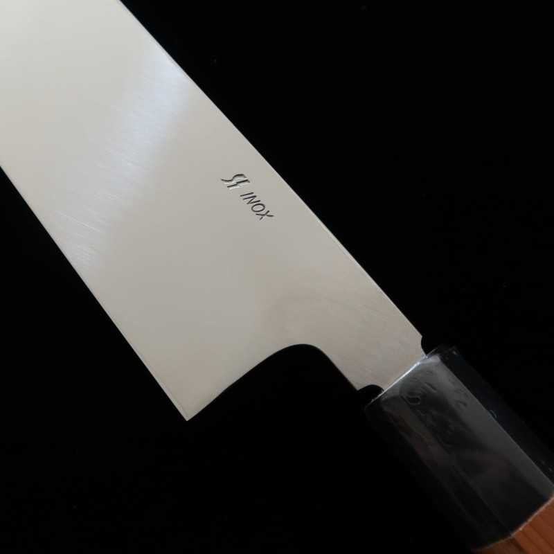 高純度のスウェーデンINOX(ステンレス)鋼を使用し、和食調理師が要求する繊細な切れ味となめらかな使い心地を実現しながら錆への強さを併せ持った本職用和包丁です。