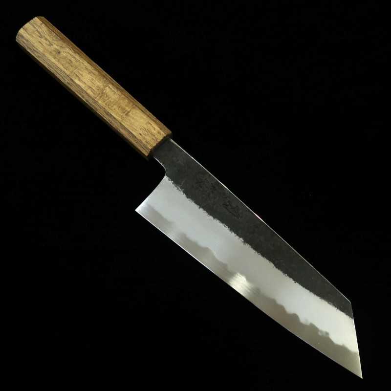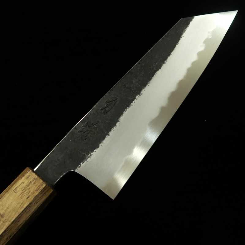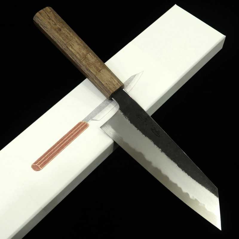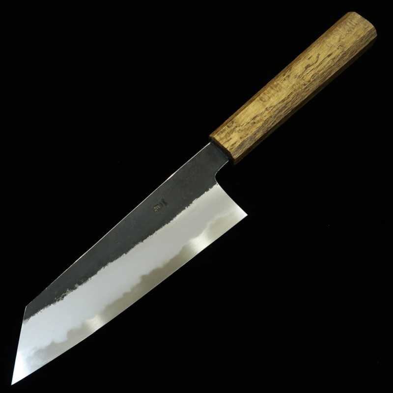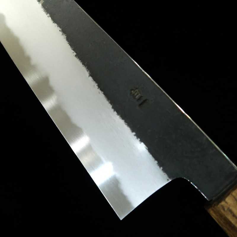 「墨(すみ)」シリーズは焼入れしたままの黒い肌に鍛造時の痕が残った力強い印象の包丁。