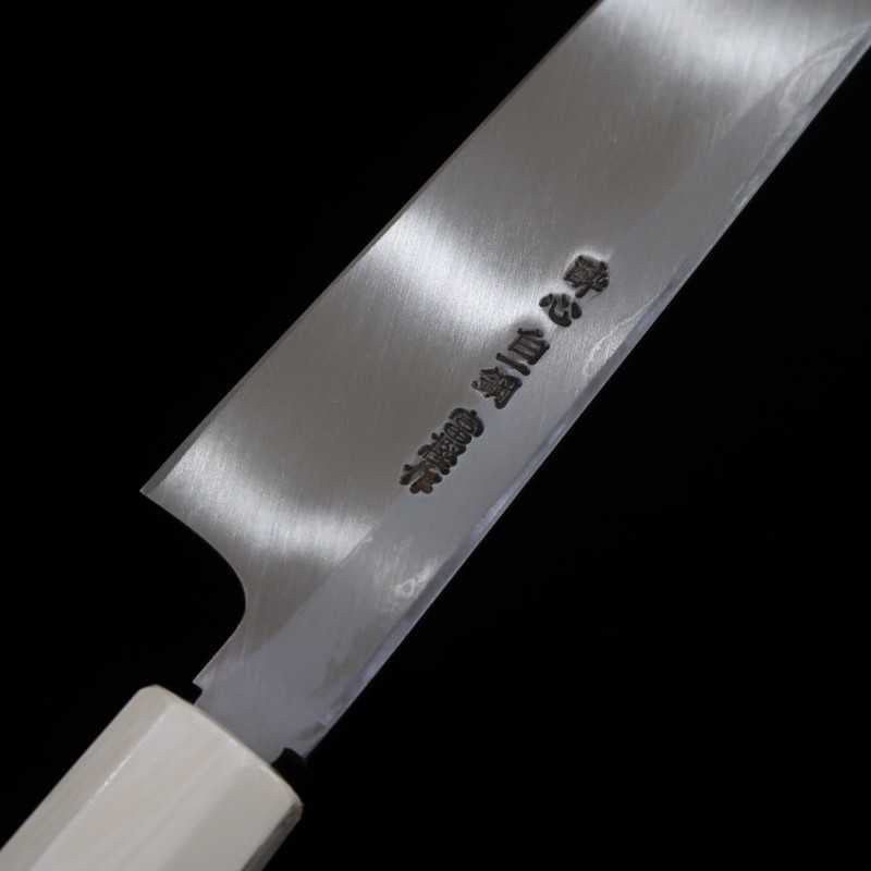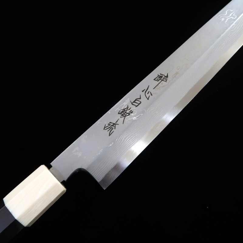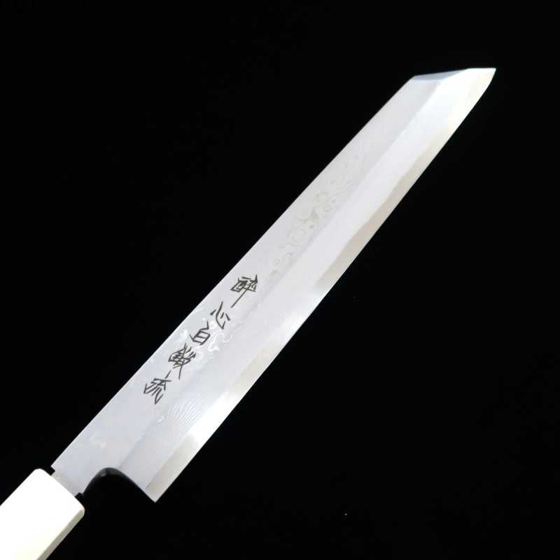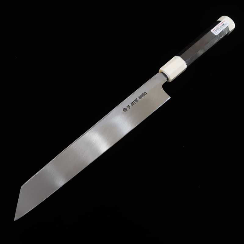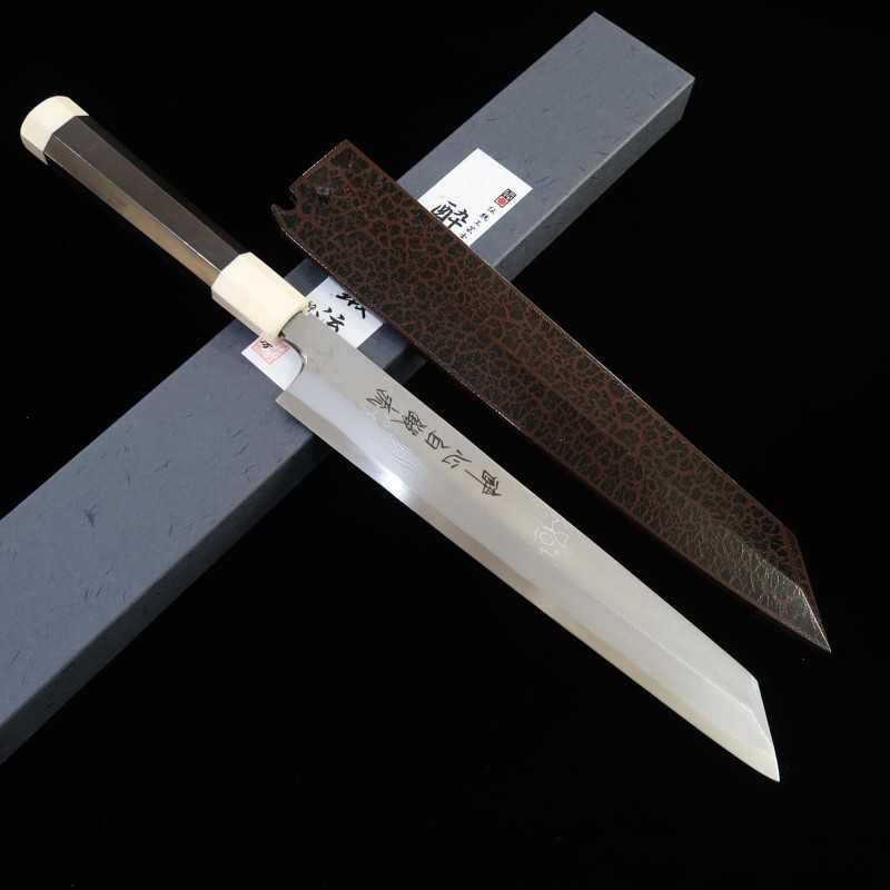 酔心 SUISIN 富樫憲治作 白鍛流 白紙一号 切付 漆塗り鞘付き 黒檀白両輪柄 (270mm)