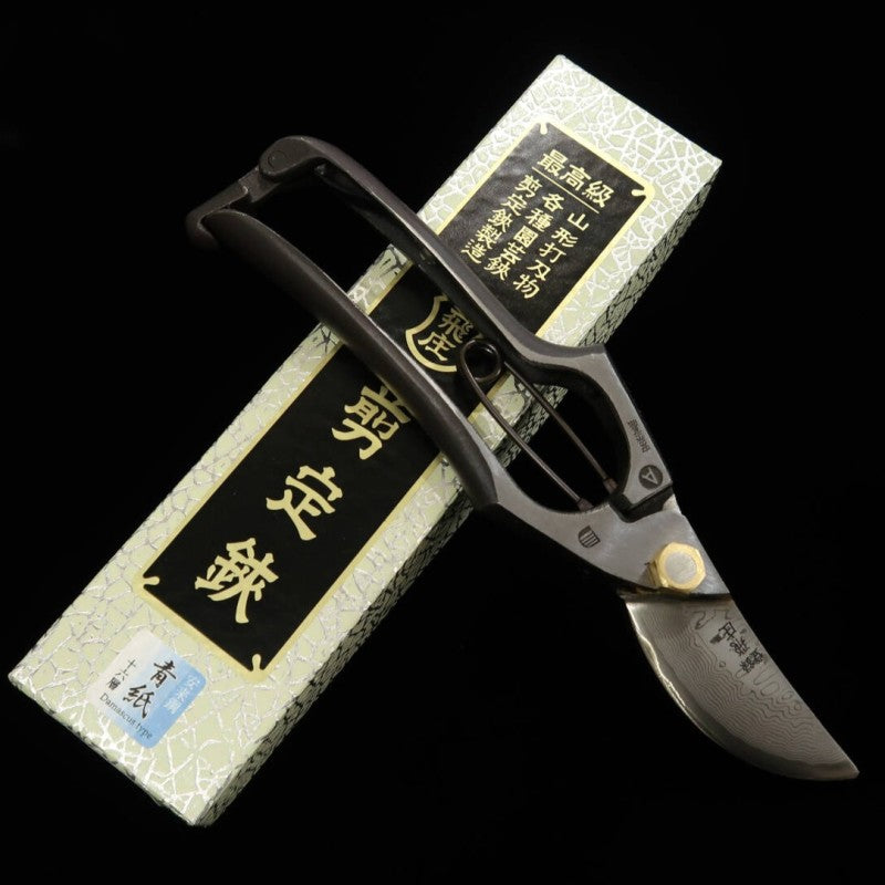 Tesoura de poda lâmina forjada Yamagata Hisho aço Aogami 16 camadas Damasco Tipo A (200mm)