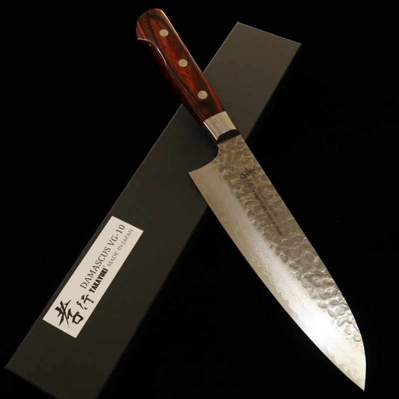 Sakai Takayuki Santoku VG10 33 camadas Damasco, martelado, cabo de mogno (180mm)