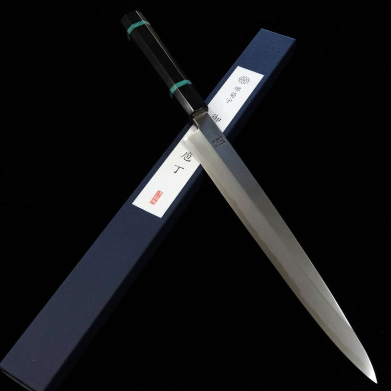 Faca Yanagiba Sakai Kikumori Aogami No. 1 Forjada por Nakagawa Satoshi (270/300mm)