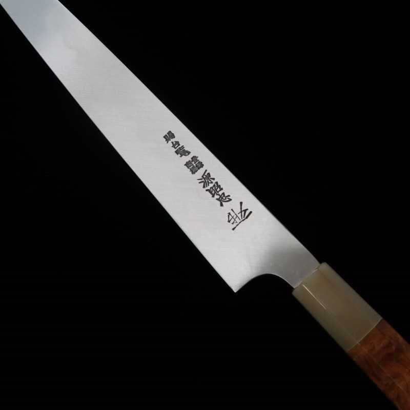 Yanagiba MIZUNO Tanrenjo Honyaki DX Aogami 2 com cabo Karin e bainha de magnólia (300mm)